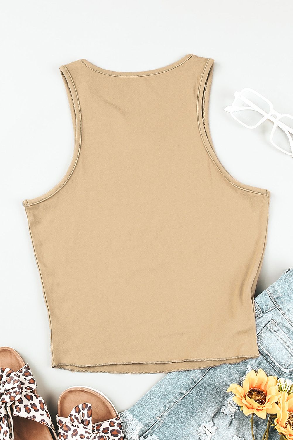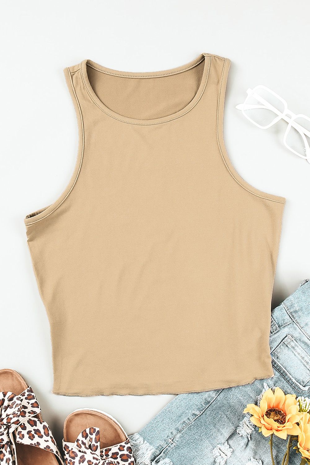 Black Solid Color O-Neck Slim-fit Cropped Tank Top