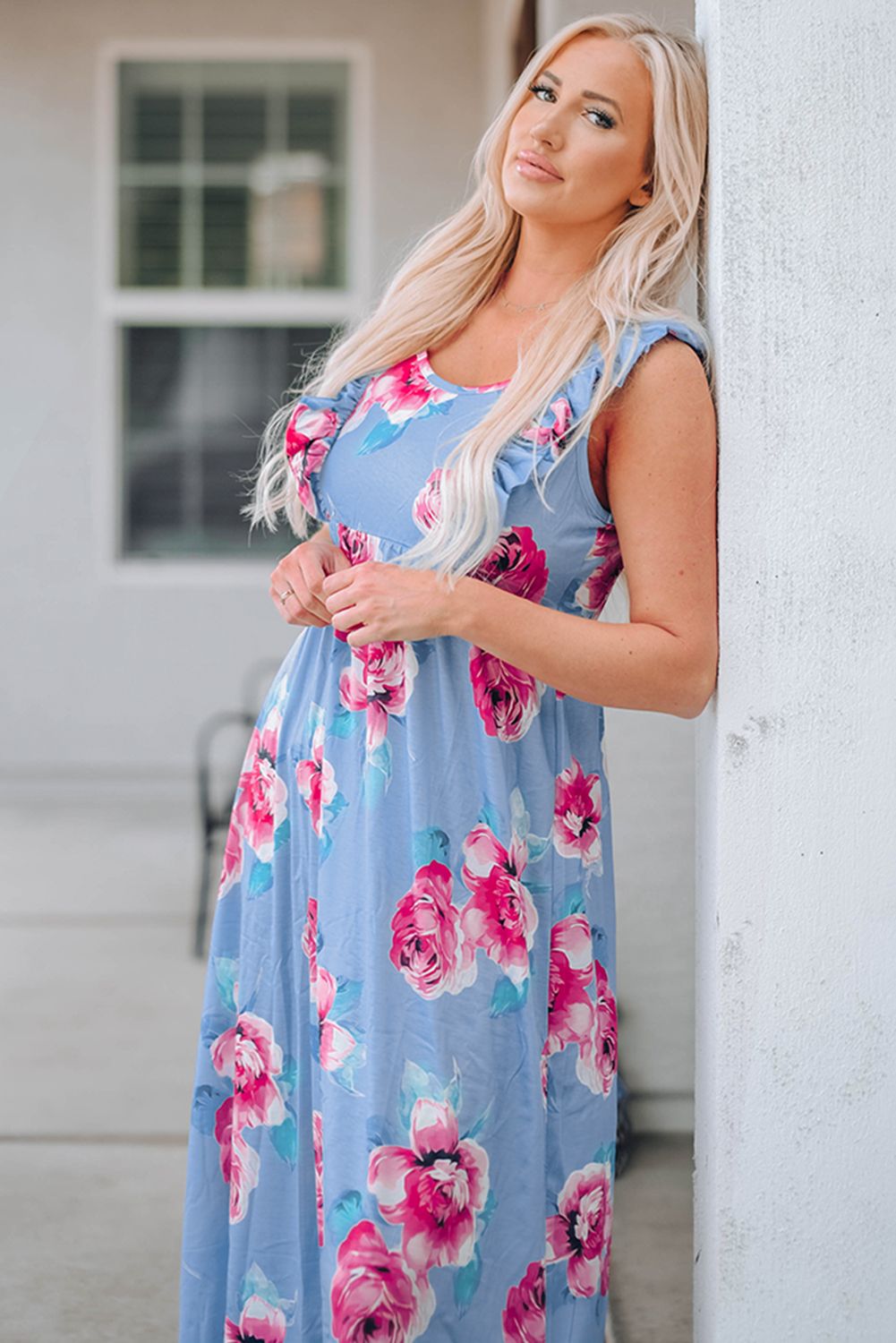 Ruffle Sleeveless High Waist Floral Maxi Dress