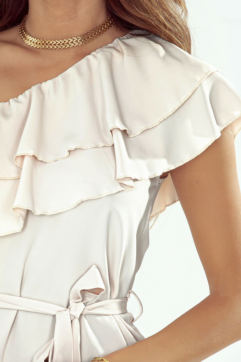 Apricot One-shoulder Ruffles Mini Dress