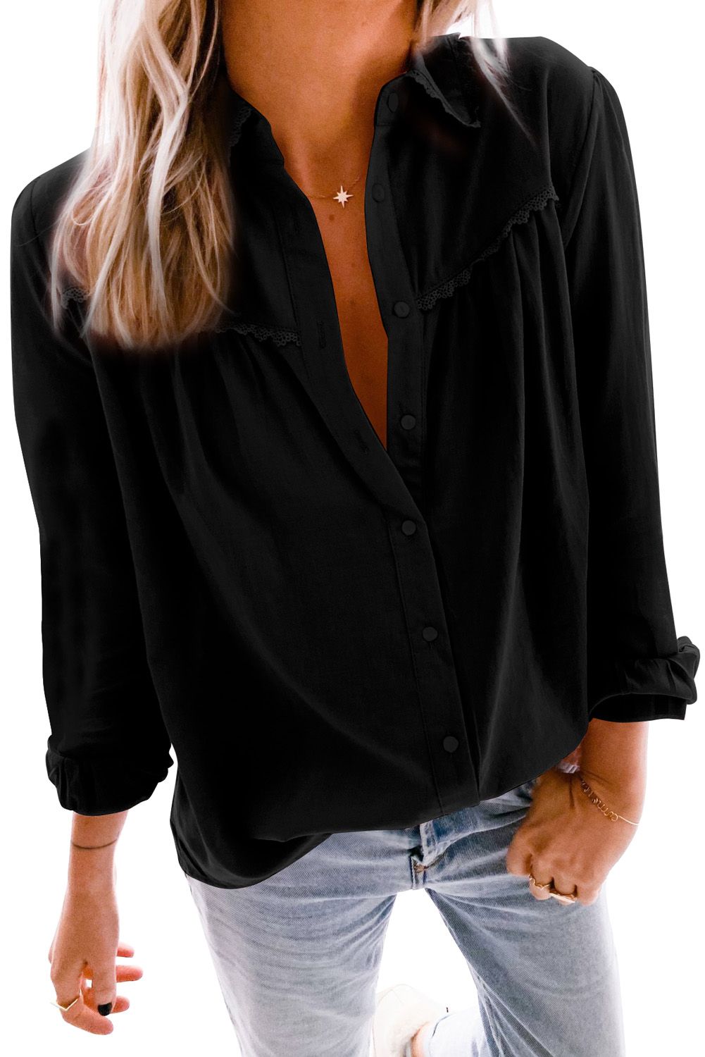 Black Plain Pleated Bust Cuffed Sleeves Shirt