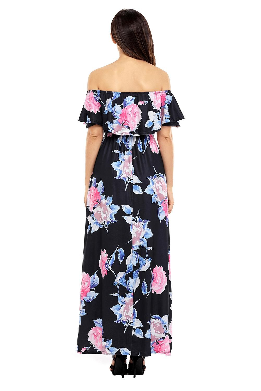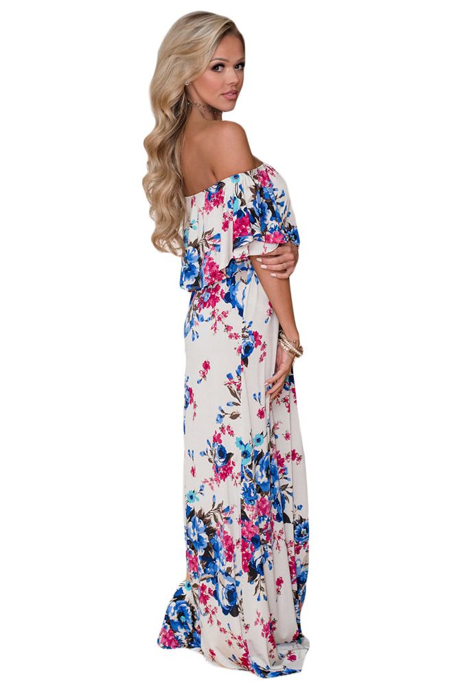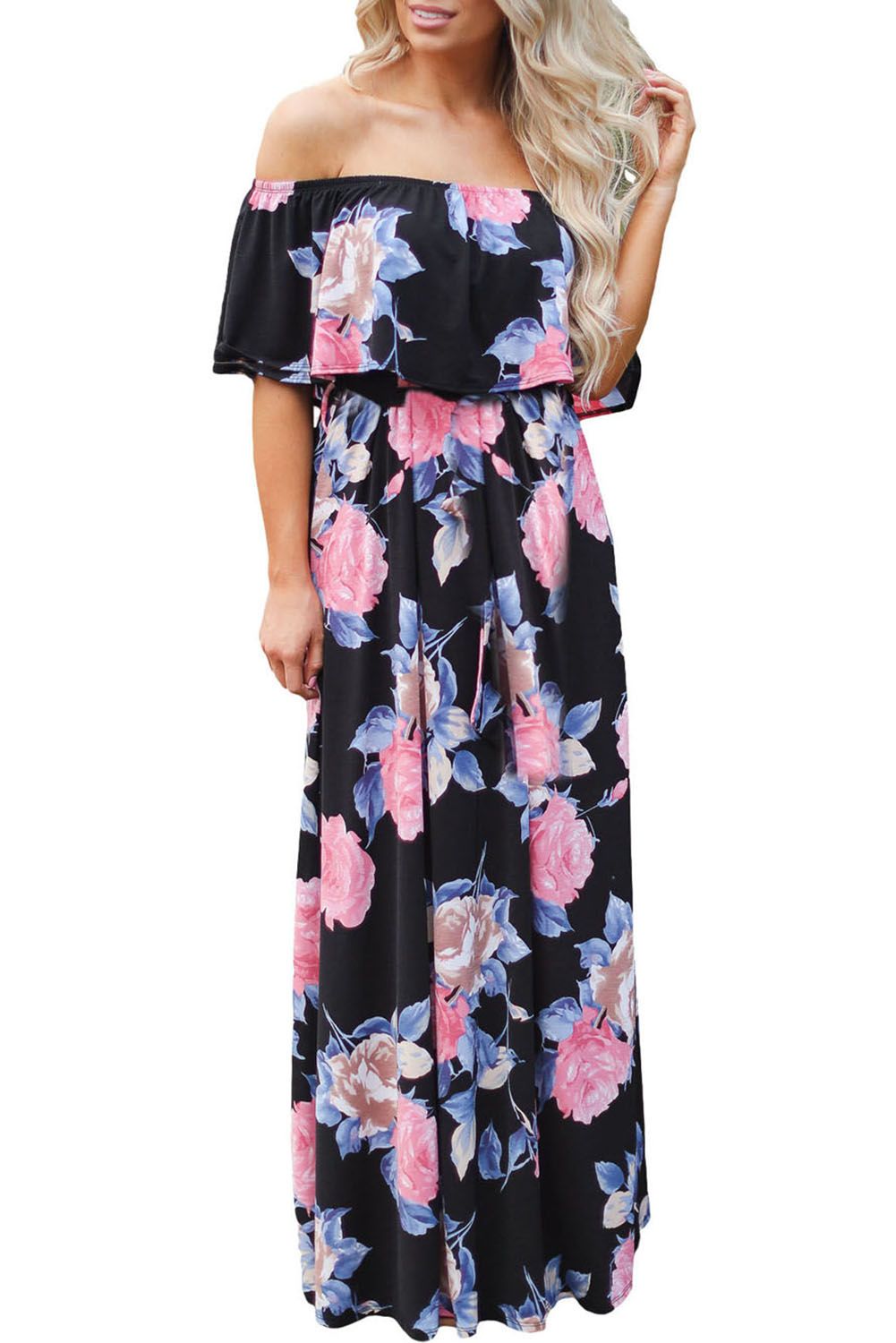 Flower Off Shoulder Long Boho Dress was designed to meet all your indivisual favorite demands, the stylish design details are moving and impressing that include off shoulder neckline with ruffled layer, charming floral print goes throughout the dress, boho style maxi length cut also makes this dress perfect for holiday and party!