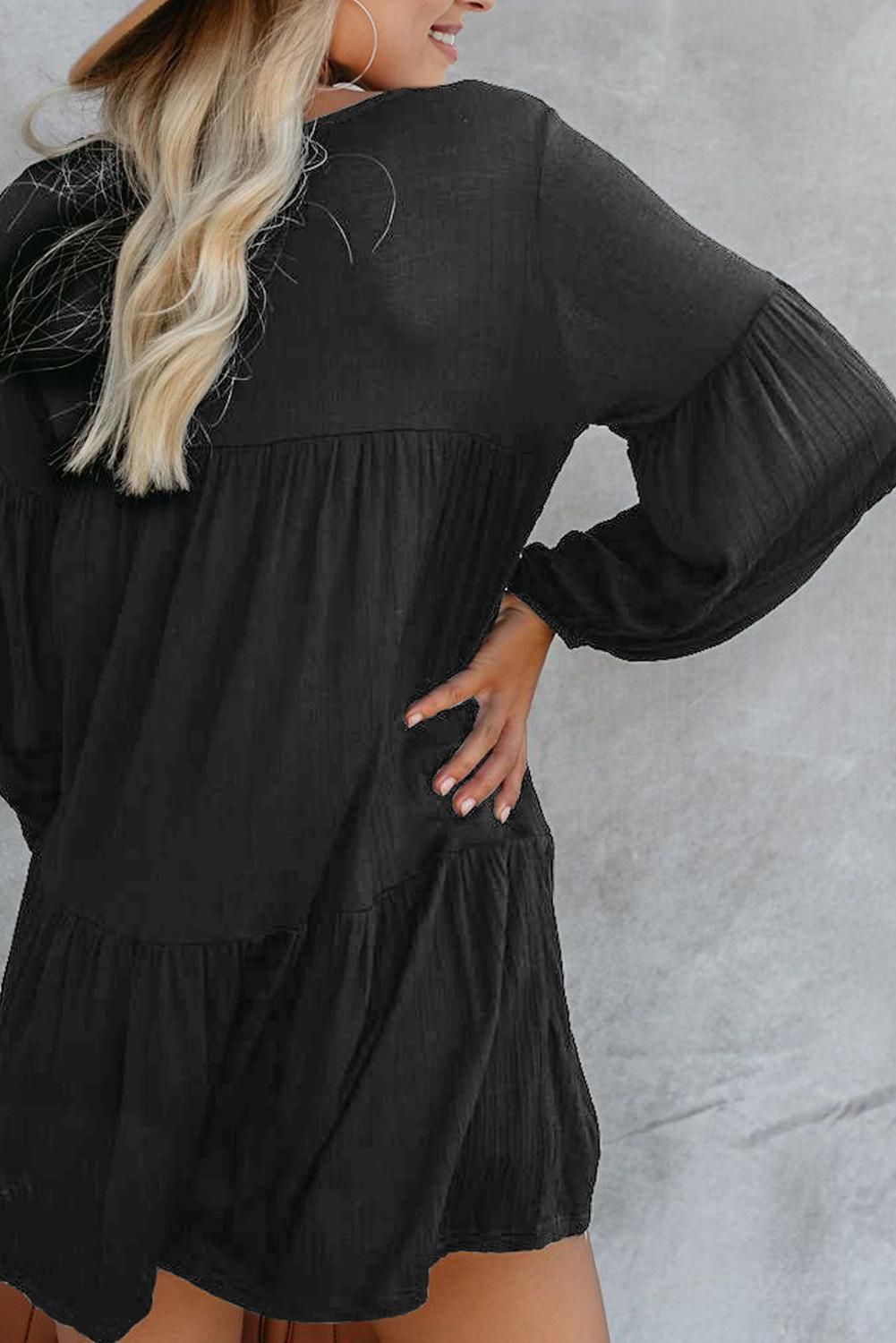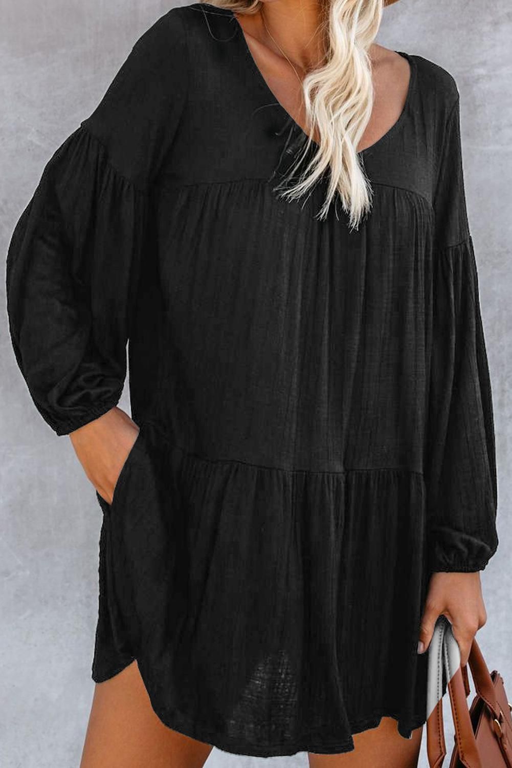 Black Wanderlust Pocketed Tiered Tunic Dress