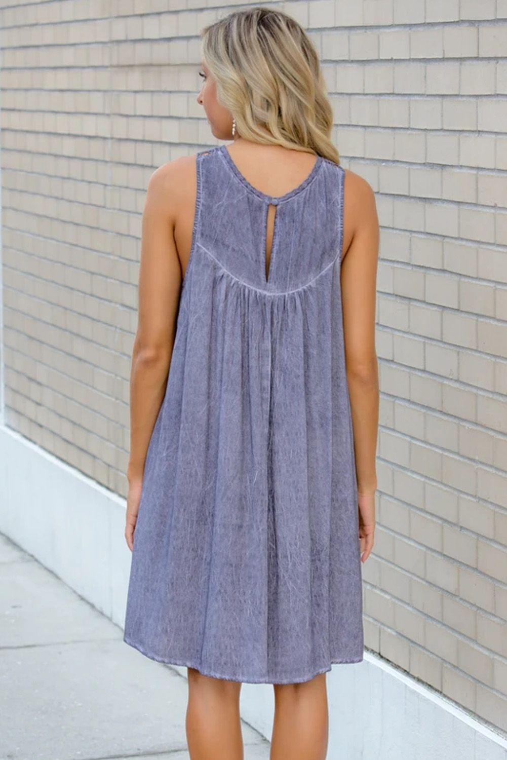 Violet Lace Neck Sleeveless Flowy Dress
